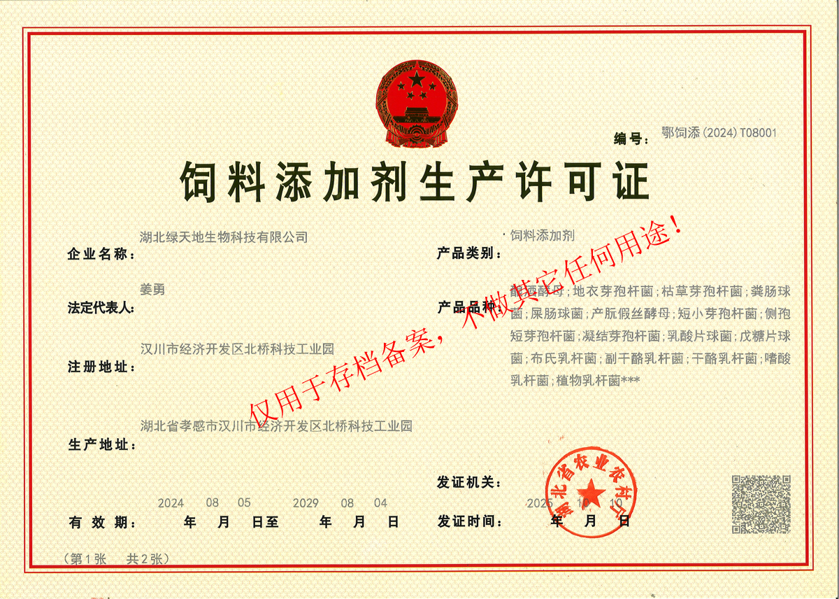 湖北綠天地生物科技有限公司 (簡稱綠天地公司)投資7000萬元,擁有25000平方米的廠房和國內(nèi)先進(jìn)的設(shè)備360臺套,建有微生物發(fā)酵、發(fā)酵冷凍干燥、低溫造粒等8個車間,發(fā)酵罐總?cè)萘?50立方米,專業(yè)的飼用級益生菌發(fā)酵生產(chǎn)基地。 公司已通過IS09001:2015質(zhì)量管理體系認(rèn)證。 綠天地公司得到了華中農(nóng)業(yè)大學(xué)、中國農(nóng)...